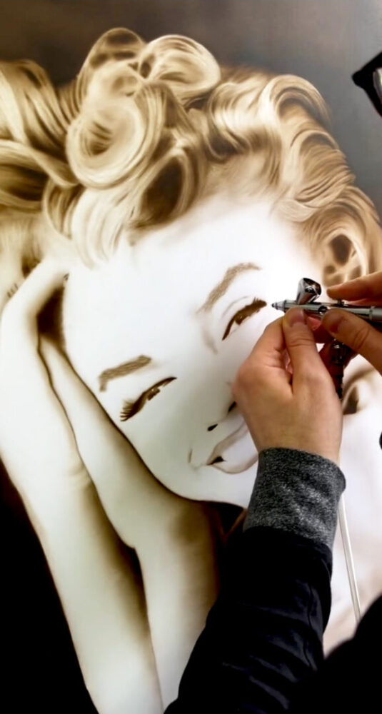 Eher zufällig bin ich im Fernsehen auf Airbrush gestoßen, im Zusammenhang mit Custom Painting, bei dem die Airbrush häufig genutzt wird, um Oberflächen von Autos oder Motorrädern zu gestalten. Das hat mein Interesse geweckt, und ich bin gezielt auf die Suche nach Kursen gegangen. Dort konnte ich mich intensiver mit bildnerischen Prozessen beschäftigen. Relativ schnell wurde mir klar, dass ich mehr in die Tiefe gehen möchte, um eigene Ideen umzusetzen und meinem handwerklichen Anspruch gerecht werden zu können.